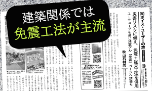 「これまでは耐震棒を使っていましたが、この工法(免震ゲル「泰震」)に切り替えたことで穴明け加工が不要になり、施工が楽になりました。地震対策はお客様の関心度が高いため、当社ホームページでも耐震・免震施工を前面に打ち出してアピールしています」(記事内抜粋)